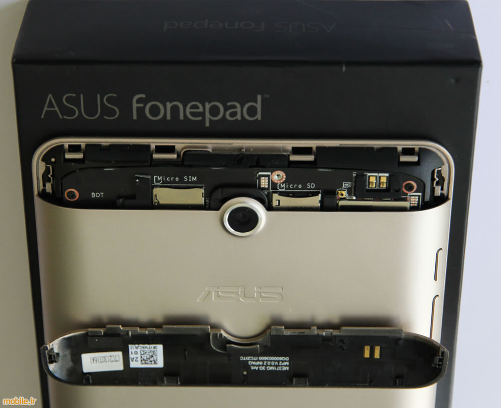 در زیر این کاور با ظاهر شدن بخشی از بورد الکترونیکی دستگاه دو اسلات Micro SIM و حافظه microSD در دو سوی لنز دوربین پدیدار میشوند. اسلات کارت حافظه در fonepad از کارت حافظه تا ظرفیت 32 گیگابایت پشتیبانی میکند.