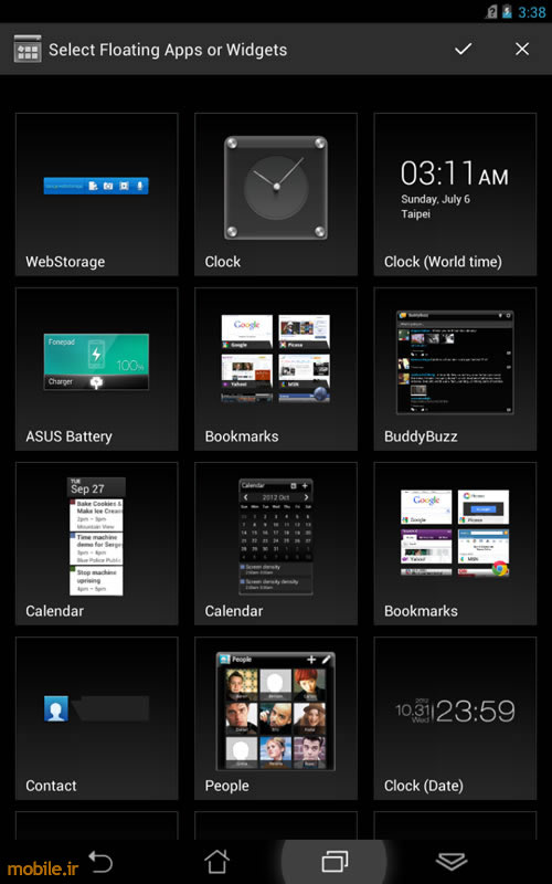 تبلتهای ایسوس همواره با برخی ویجتهای اختصاصی این برند همراه میشوند و در این میان fonepad نیز طبیعتا استثنا نخواهد بود. یکی از این ویجتها که ارتقا محسوسی را نسبت به سری Transformer تجربه کرده Task Manager این مدل است که بصورت یک ویجت مستقل در صفحه Home به نمایش در میآید. در این ویجت تمامی برنامهها و پروسههای در حال اجرا بصورت لیست شده به نمایش در میآید و امکان بستن تکی یا دستهجمعی آنها در اختیار کاربر قرار میگیرد. یک نکته جدید در مورد این ویجت امکان قفل کردن یک نرمافزار یا یک پروسه در هنگام بستن دستهجمعی برنامهها است که با زدن آیکون قفل مقابل هر برنامه میتوان از آن استفاده کرد.